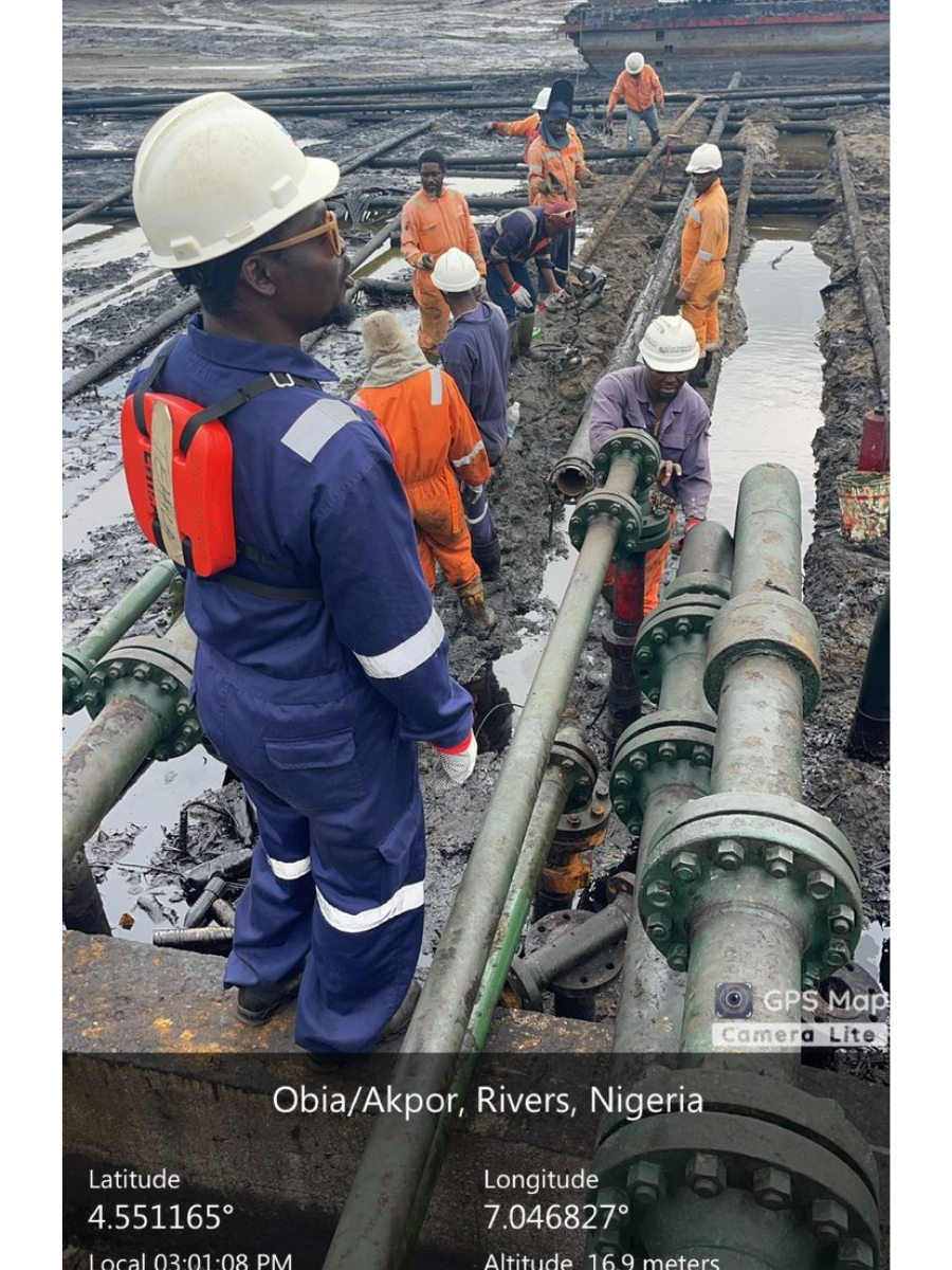 In 2024 we completed the replacement of 6.2km of 6” and of 5.646km of 4” Sch. 40 PE Coated flowline pipes at CAWC033L/S Flowlines in Akaso Field, Cawthorne Channel - 2, OML 18(4”) and Well head maintenance on Akaso 17ST OML 18 field through Concave Energy Services and TOJ Energy for NLNG.